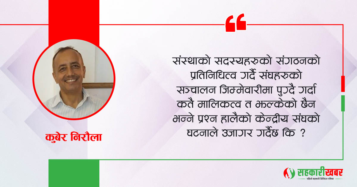 विश्व सहकारी अभियानको अभ्यासको पालना गर्दै गर्दा नेपालमा पनि सहकारी अभियानले आठ दशकको दौरानमा दौडिरहेको छ। अझै पनि सहकारी अभियानले आफ्नो स्वरूप स्थापित गर्न नसकेको अनुभव यसका प्रयोगकर्ताहरूले महसुस गरेको आभास समय–समयमा झल्किँदै छ। सहकारी सञ्जालमा कार्य गर्ने शैली तथा अभ्यासलाई फरक ढङ्गबाट प्रयोग गर्ने गरी यसलाई प्रभाव पार्ने कानुनले पनि व्याख्या गर्दैन। अन्य प्रकृतिका संघ–संस्थालाई गरिने अभ्यास नै सहकारी...