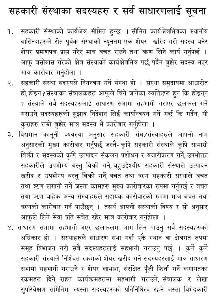 सहकारी संस्थाका सदस्यहरु र सर्वसाधारणलाई सूचना !