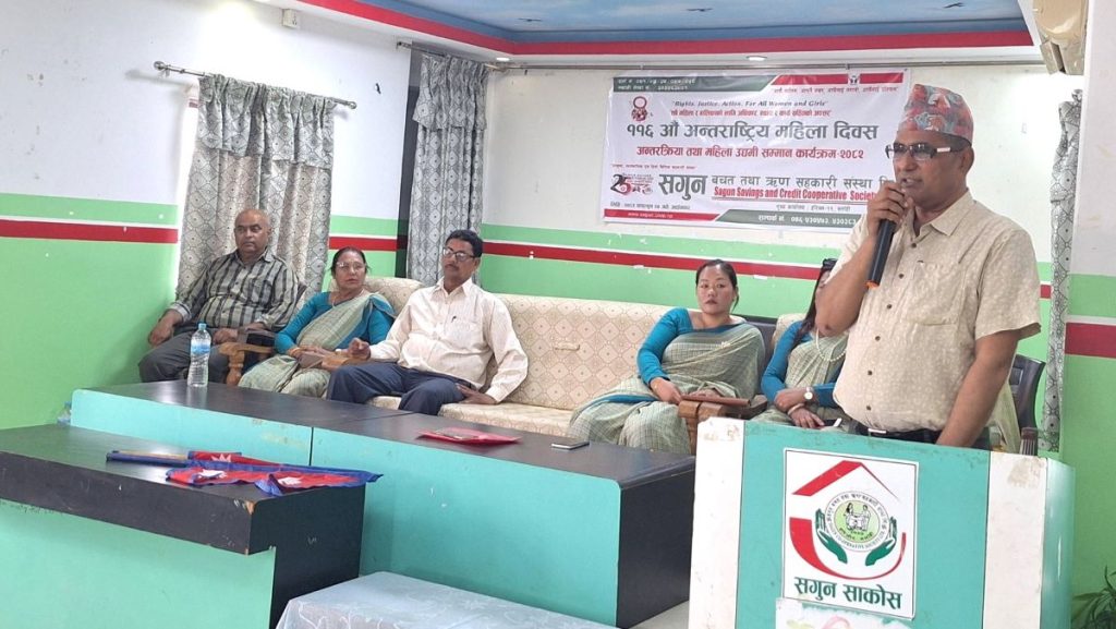 काठमाडौं : हरिवन-१, सर्लाही स्थित सगुन बचत तथा ऋण सहकारी संस्थाले ११६औँ अन्तर्राष्ट्रिय महिला दिवसको अवसरमा ‘अन्तरक्रिया तथा उद्यमी सम्मान’ कार्यक्रम सम्पन्न गरेको छ।